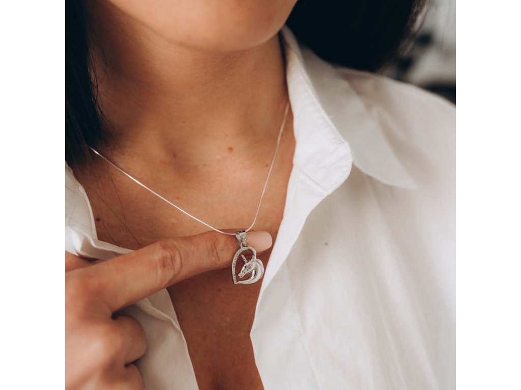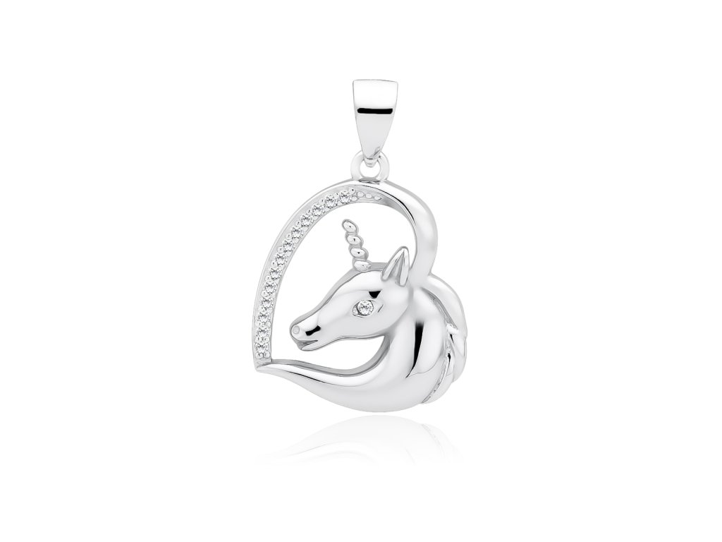 Tímto přívěskem malou princeznu nezklamete. Kouzelný stříbrný přívěsek ve tvaru srdce, s roztomilým jednorožcem, je zdobený třpytivými zirkony. Rhodiová úprava udržuje šperk jako nový.