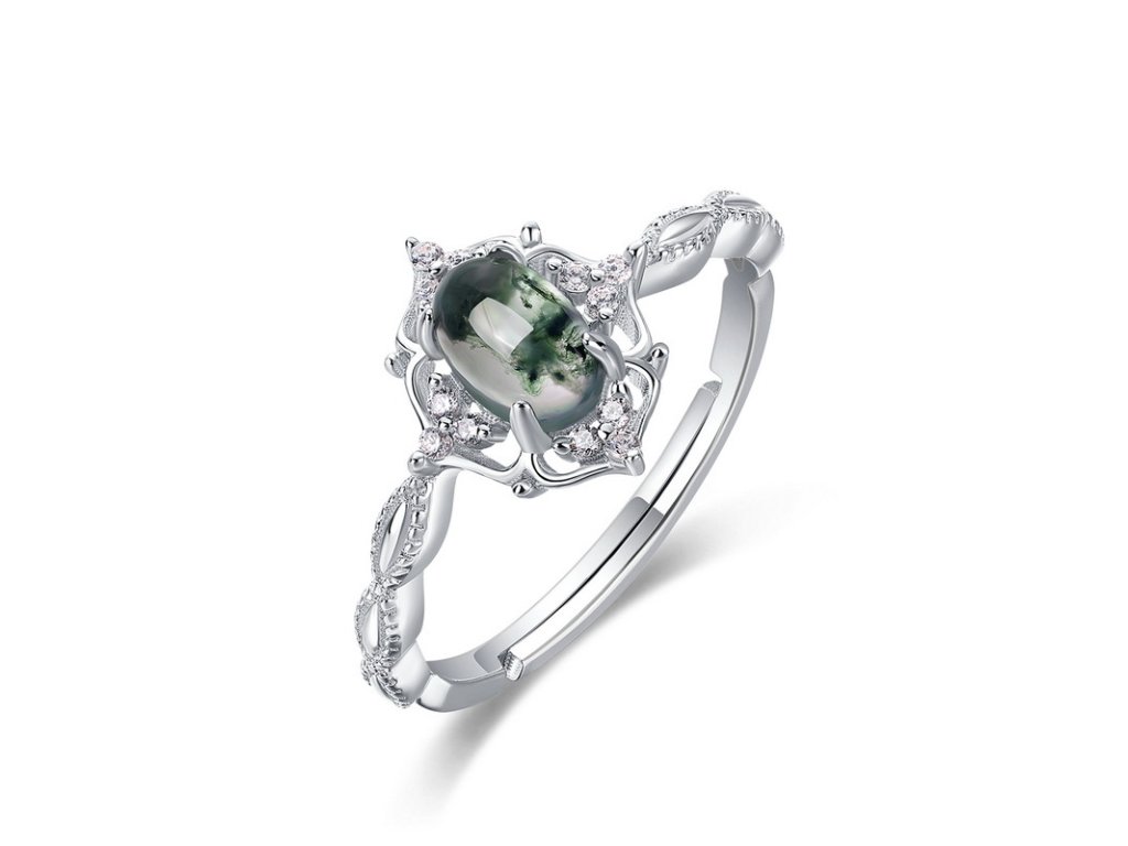 Stříbrný nastavitelný prstýnek MECHOVÝ ACHÁT Ag 925; ≤1,2 g.