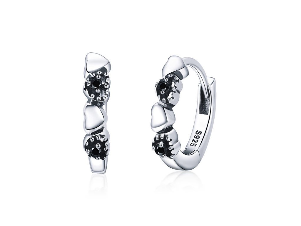 Malé kruhové náušnice ze stříbra zdobené srdíčky a tmavými kameny zaujmou jemným kontrastem a precizním zpracováním. Kombinují něžnost motivu s decentní elegancí, která se hodí pro každou příležitost. Jsou lehké a pohodlné na nošení po celý den.