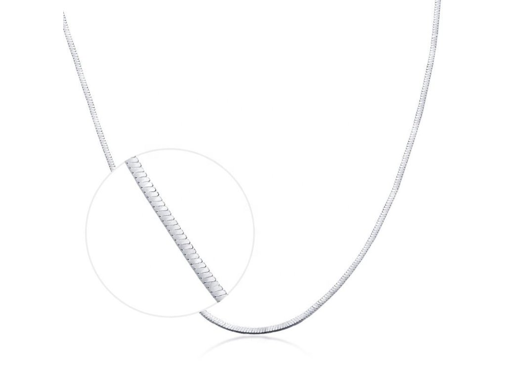Hladký stříbrný řetízek typu had má jemně lesklý povrch a díky rhodiování si drží barvu i odolnost proti tmavnutí. Ideální nastavitelná délka 45 - 50 cm. Je ideální pro samostatné nošení i jako základ pro přívěsek.