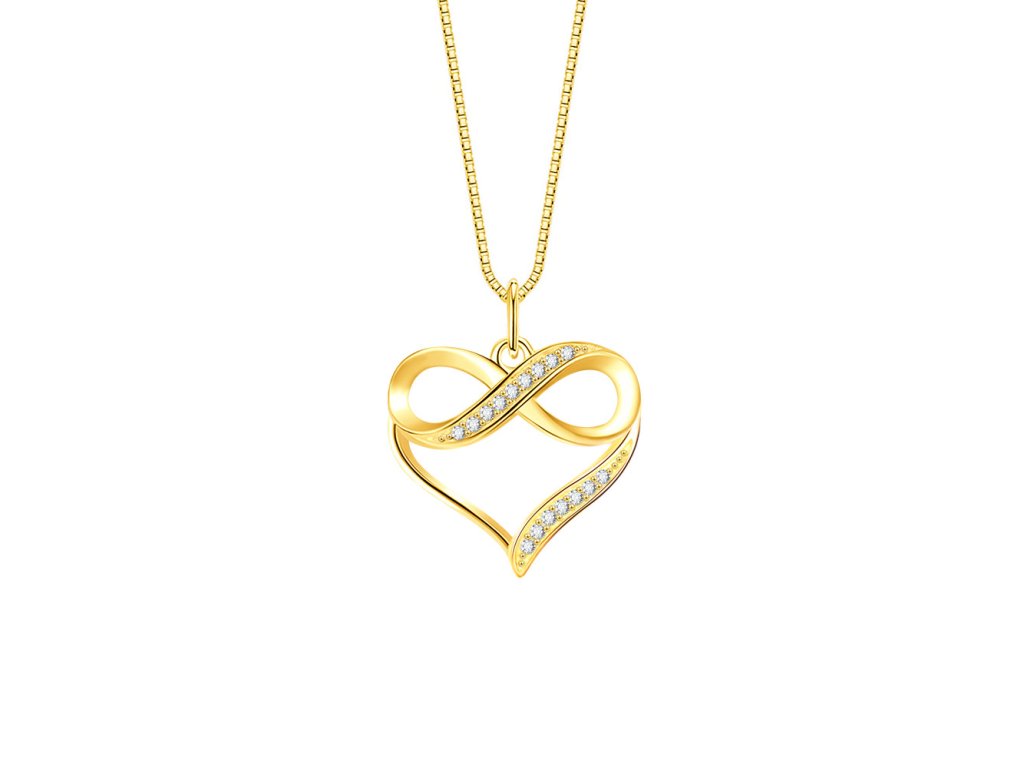 Náhrdelník ve tvaru srdce plynule přecházejícího do symbolu nekonečna působí jako jemná připomínka trvalých citů. Žluté zlacení dodává motivu hřejivý, luxusní tón, který krásně vynikne na kůži. Přívěsek o rozměru 17 × 17 mm působí vyváženě, je nepřehlédnutelný, ale stále decentní pro běžné nošení.
