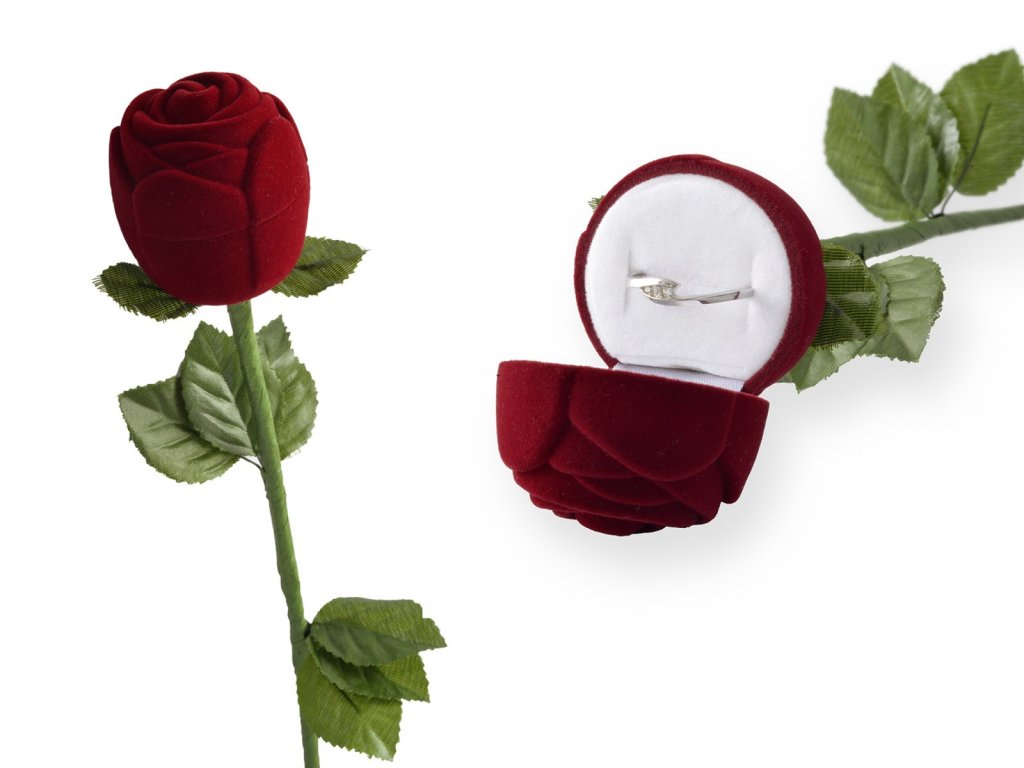 Dárková krabička vypadající jako skutečná růže. Je ideální pro prsteny nebo náušnice. Perfektní volba pro dárek z lásky.