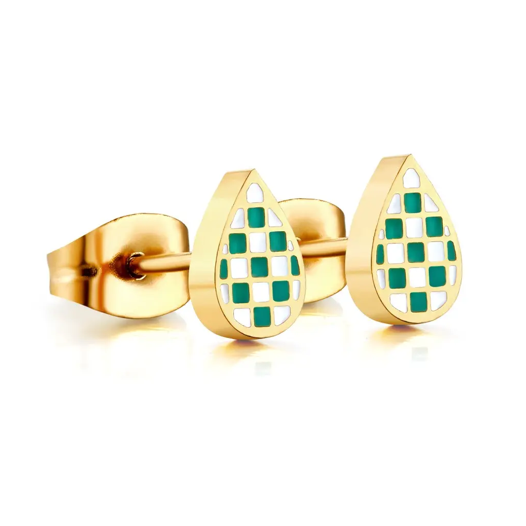 Geometrický vzor v kapkovém provedení vytváří zajímavou kombinaci tvaru a barev. Zelený tón působí svěže a přirozeně. Náušnice jsou lehké a dobře drží na uchu. Vhodné jako nenápadný, ale originální doplněk.