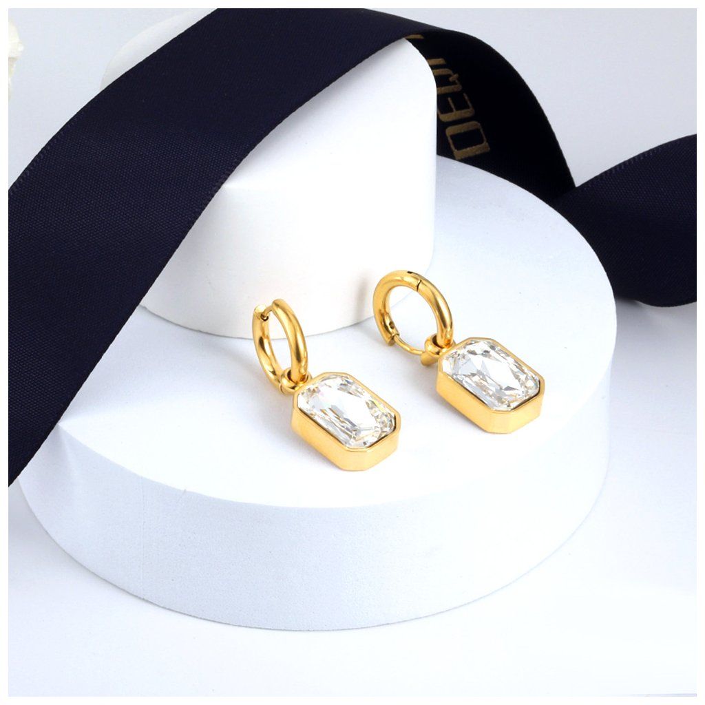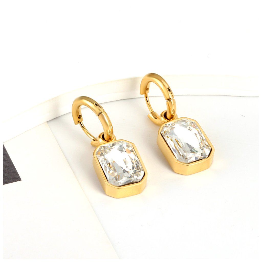 Design těchto náušnic stojí na výraznějším kameni v obdélníkovém tvaru. Hladké linie kovu nechávají vyniknout samotný kámen. Kroužek drží celek pevně a zároveň nepůsobí robustně. Náušnice mají spíše čistý, upravený vzhled bez zbytečných detailů. Dobrá volba pro ženy, které preferují jednoduché šperky s kamenem.