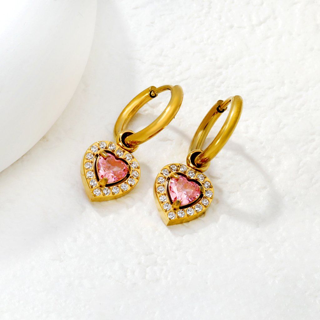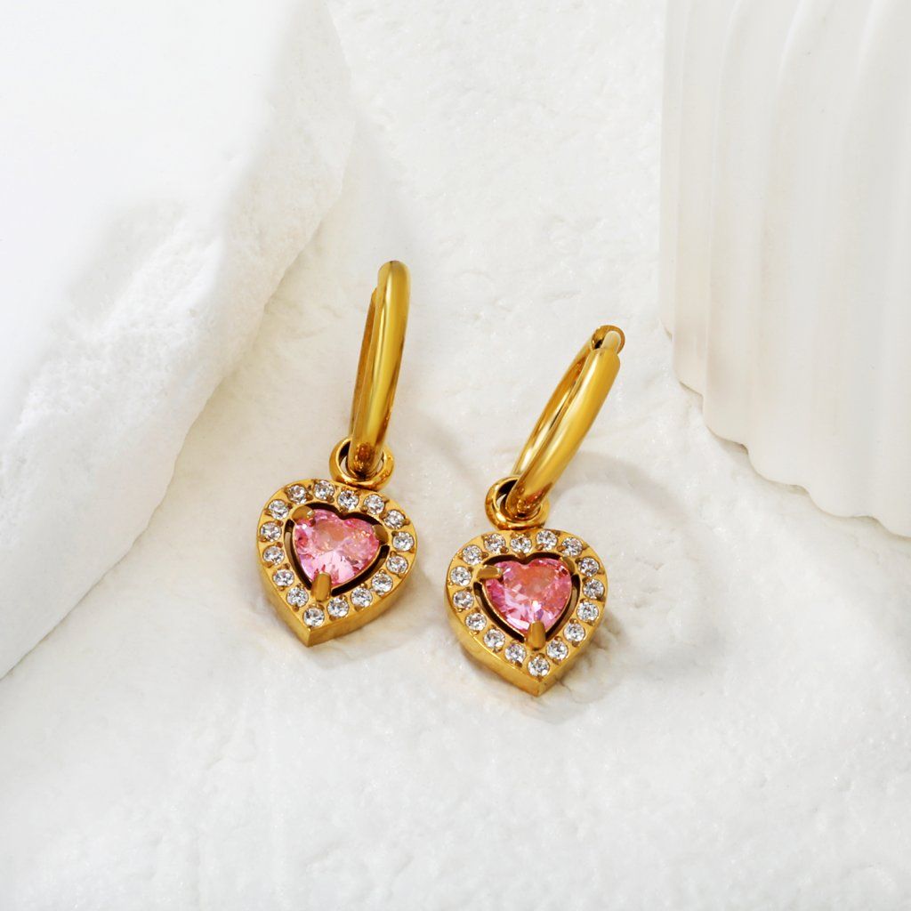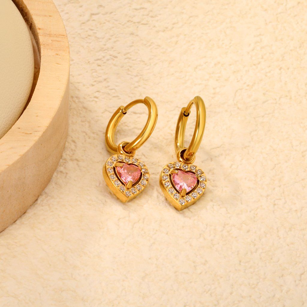Růžové srdce v kombinaci se zlatým povrchem vytváří klidný a vyvážený vzhled. Náušnice nejsou velké, ale detail je dobře čitelný. Při pohybu jemně pracují se světlem. Konstrukce je jednoduchá a funkční. Dobrá volba pro ženy, které preferují jemnější šperky.