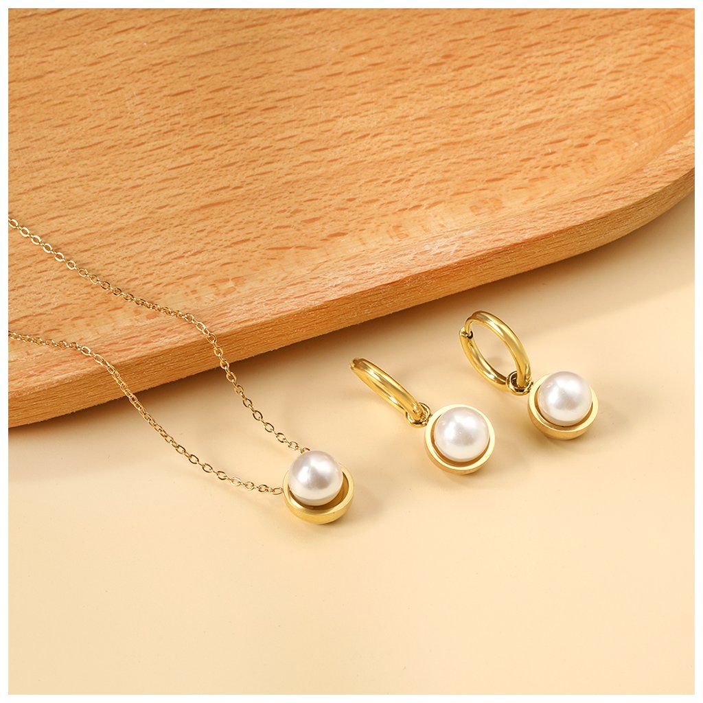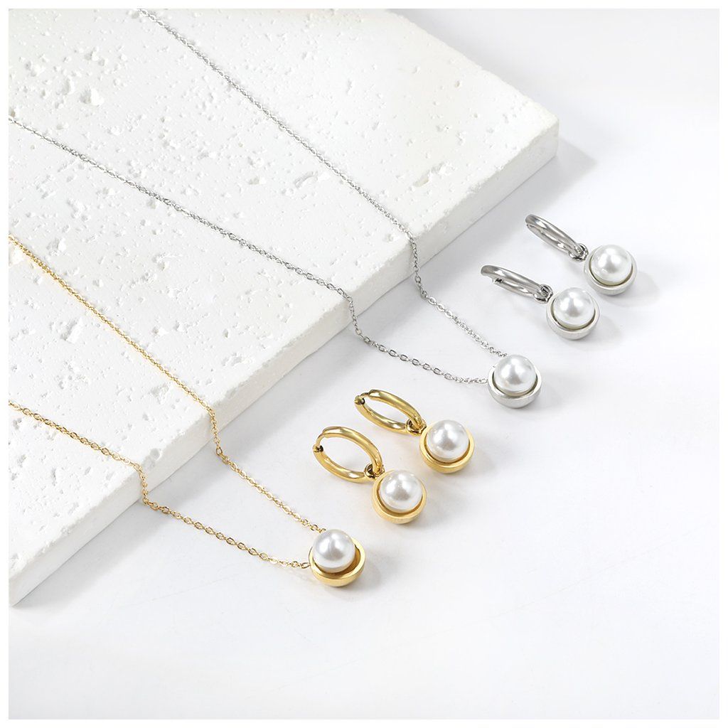 Perlová sada staví na jednoduchosti a jemnosti. Perličky jsou zde hlavním prvkem. Řetízek 45 + 5 cm umožňuje přizpůsobit délku podle výstřihu. Vhodné pro ženy, které hledají decentní svatební šperky.