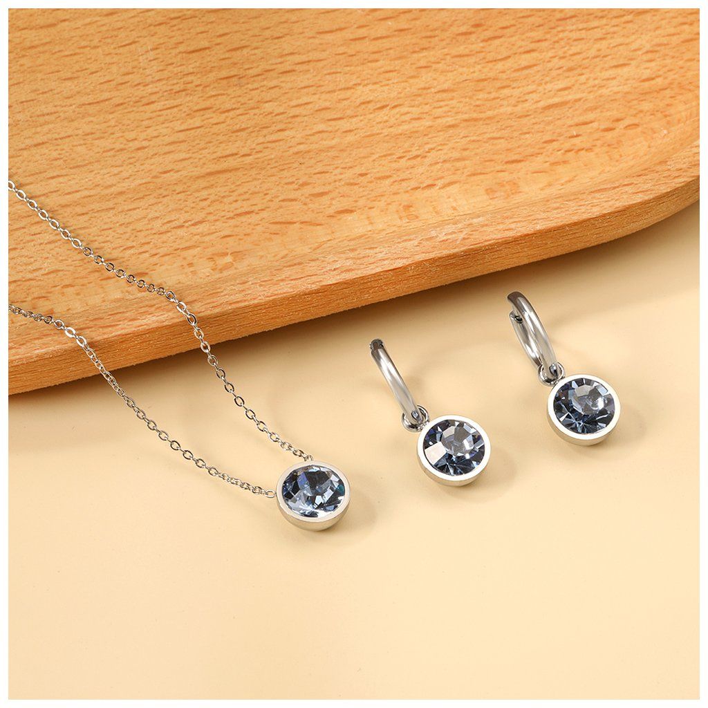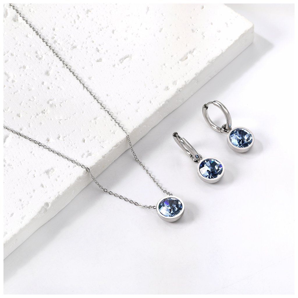 Jemný, čistý odstín připomíná vodu a klidné prostředí bez ruchu. Sada působí lehce a vyváženě, nic nepřebývá. Hodí se pro ženy, které preferují nenápadný, ale promyšlený šperk. Náušnice i náhrdelník spolu vytváří harmonický celek.